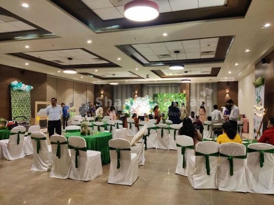 A classic & exquisite banquet space with perfect size of 150-200 seating capacity with an attached outdoor area in the heart of Gachibowli. Zero banquet rental cost, just pay for amazing food. Perfect place to host all your corporate gatherings (like Corporate lunch ons, sales meetings, new product introductions or retirement parties for key employees etc.) , Weddings, private celebrations and others. We have multi-cuisine restaurant called Cuisinekraft.Enquiry to harini@clubbotanika.in or call to +91 7997250000.